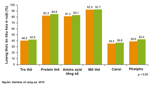Biểu đồ 1: Ảnh hưởng của PFA lên khả năng tiêu hóa chất dinh dưỡng của hồi tràng trên gà thịt