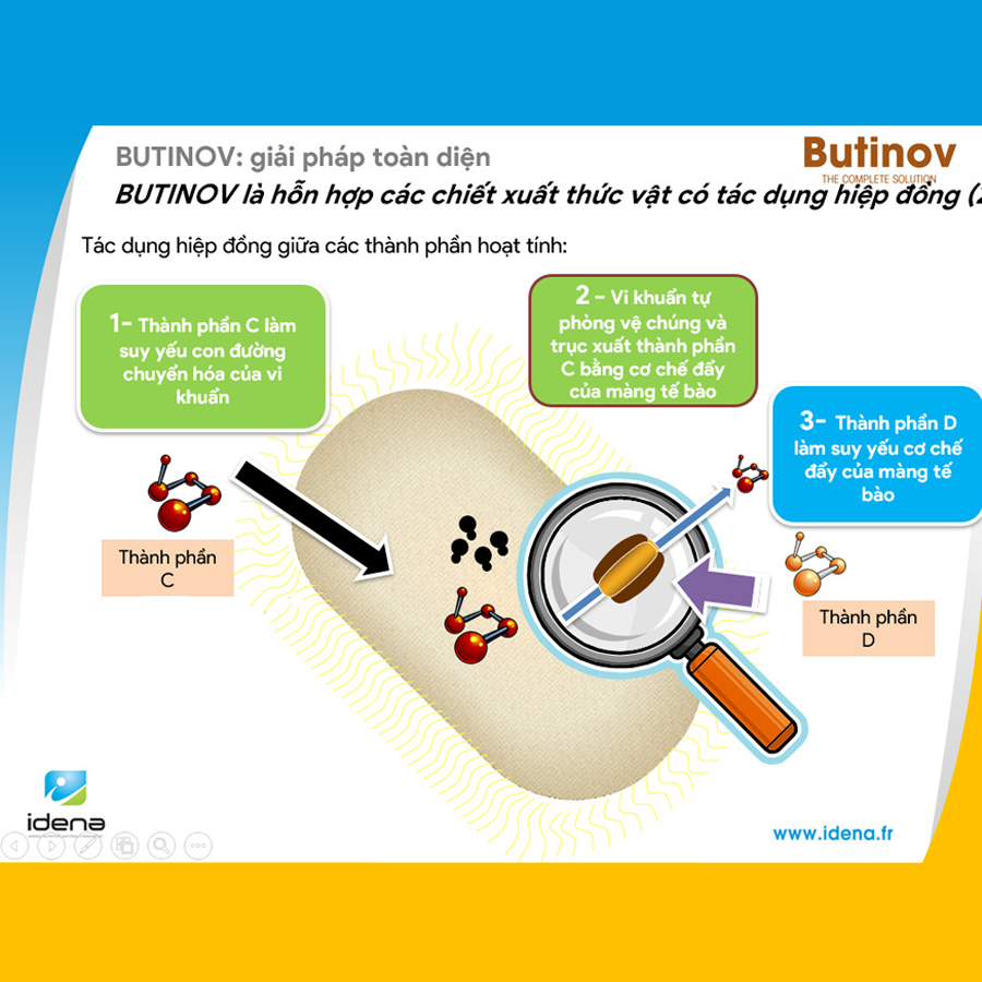 Ngoài việc sử dụng tối ưu được acid butyric, Butinov còn được kết hợp từ 1 số tinh dầu thực vật (Quế, hồi, nghệ, tiêu) có tác động hiệp đồng tiêu diệt vi khuẩn, giúp kiểm soát hại khuẩn đường ruột. Làm mềm lông nhung để hấp thụ acid hữu cơ vào trong cơ thể dễ dàng và tối ưu.