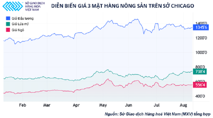 Thông thường, tháng 8 là giai đoạn giá ngũ cốc đã bước vào xu hướng giảm khi sắp bước vào giai đoạn thu hoạch ở Mỹ và thời tiết hạn hán của mùa hè đã dịu đi. Nhưng đối với mùa vụ 2021/22, khung thời tiết khô hạn vẫn đang gây ra rất nhiều lo lắng đối với sản lượng thu hoạch các loại nông sản ở Mỹ.
