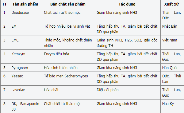 Dưới đây là một vài trong số những chất men bổ sung làm giảm ô nhiễm trong chăn nuôi được sản xuất và nhập khẩu.