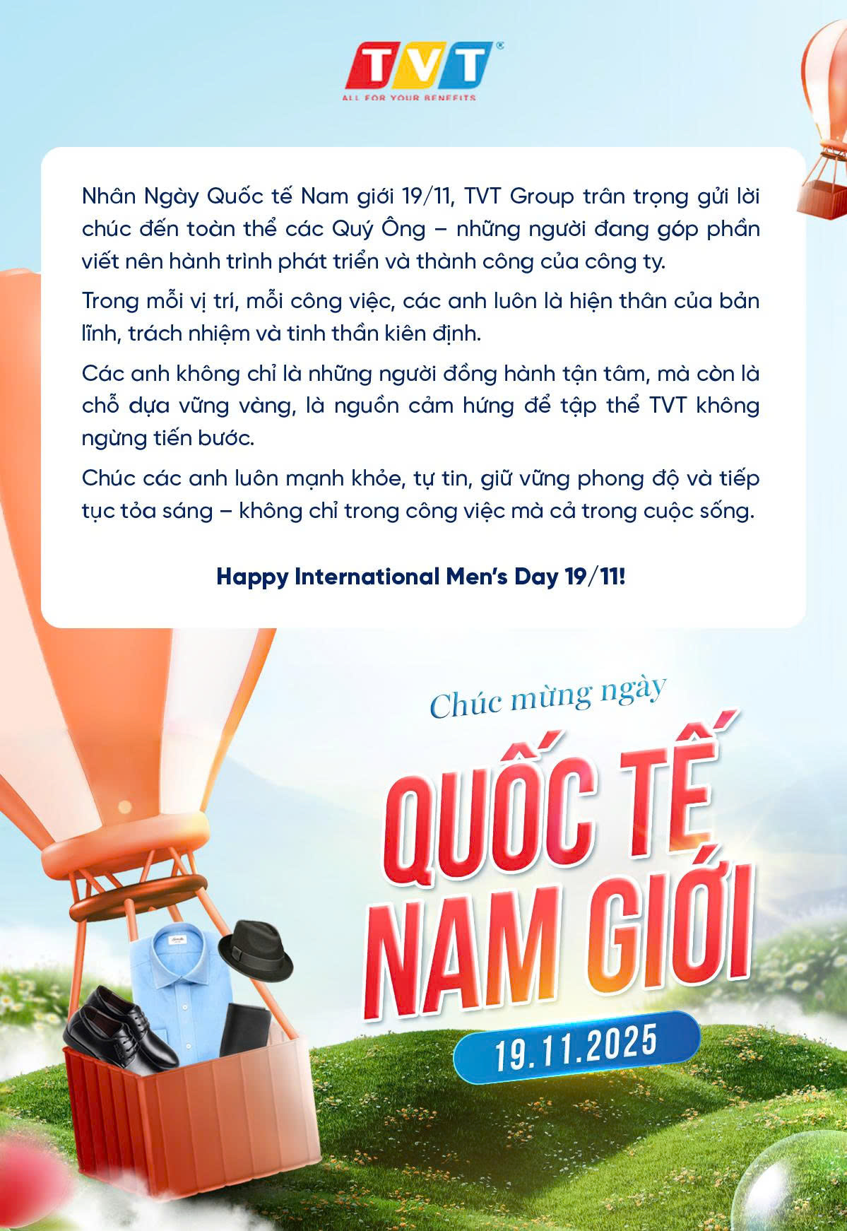 CHÚC MỪNG NGÀY QUỐC TẾ ĐÀN ÔNG 19/11