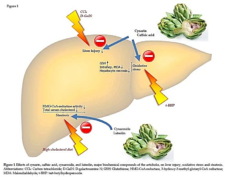 Các thử nghiệm in vivo (trên động vật và người) cho thấy atisô có tác dụng kích thích gan mật, chống sỏi mật, lợi niệu, chống ngộ độc gan, hạ lipid máu do ức chế enzyme chuyển hóa HMG CoA reductase (góp phần chống béo phì), gia tăng chuyển hóa và lợi niệu. Đối với tác dụng chống độc gan, sự hiện diện đồng thời của cynarin, muối khoáng và sesquiterpen lactone là cần thiết. Các chất này giúp kích thích tái tạo tế bào gan
