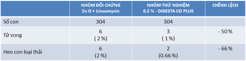 --> Giảm được 50% tỉ lệ tử vong khi dùng DIGESTA CO PLUS. Ít heo bị loại thải hơn.