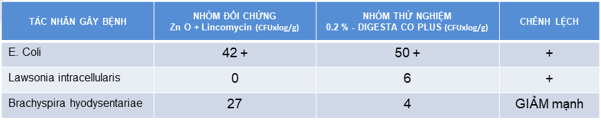 --> Tác động mạnh của DIGESTA CO PLUS giúp giảm số lượng khuẩn BRACHYSPIRES có trong phân.