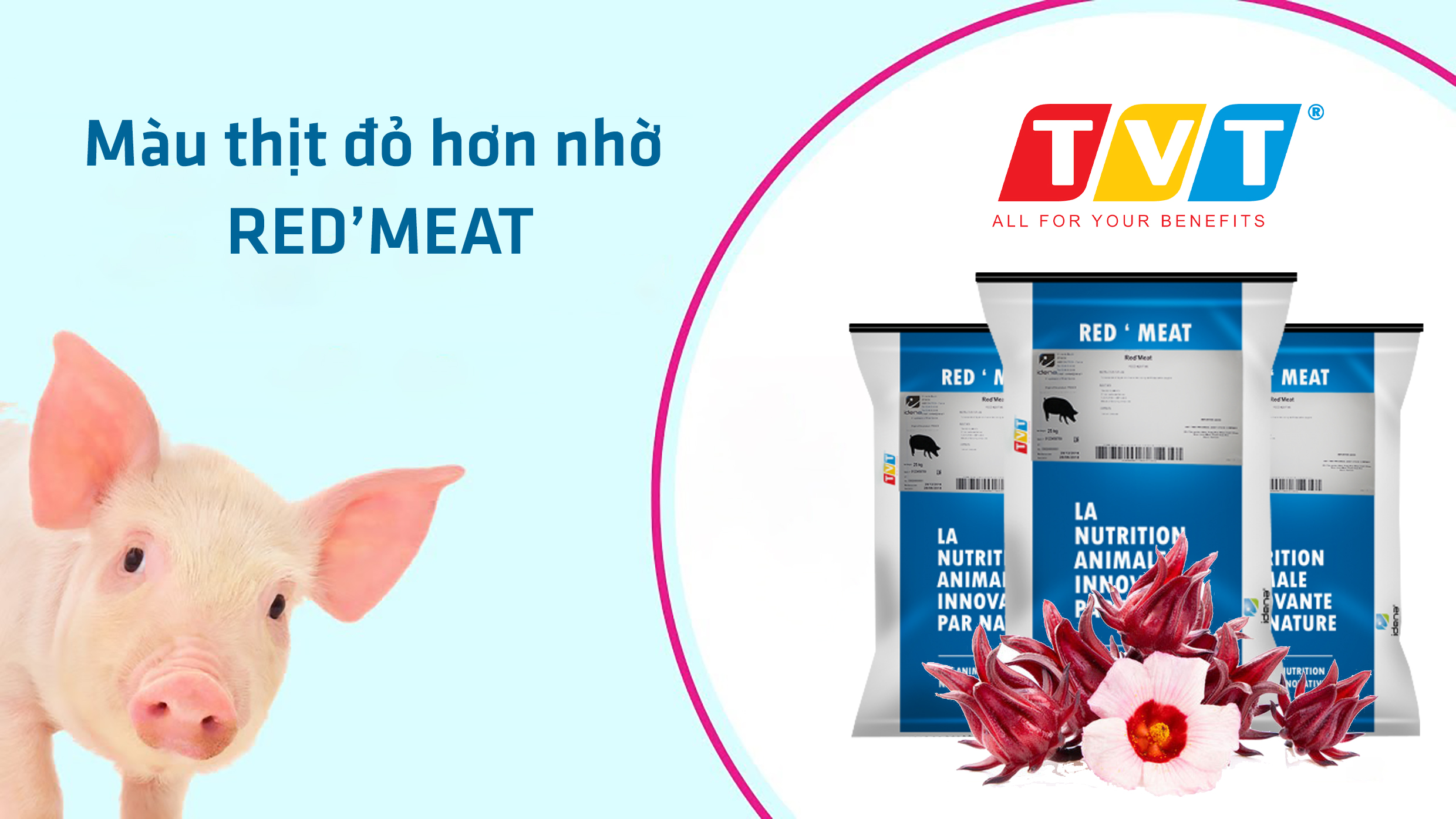 RED’MEAT là sản phẩm phụ gia an toàn và tự nhiên giúp tăng lợi nhuận cho người nuôi heo nhờ màu thịt được cải thiện nên cải thiện chất lượng thịt. Hiệu quả của RED’MEAT đã được kiểm chứng tại thị trường Việt Nam. Sản phẩm cho vào trong thức ăn với liều 1 kg/tấn dùng từ 60kg trọng lượng hơi đến giết mổ.