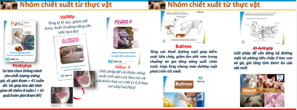 1. Sản phẩm ValiMP+: tăng sự tiêu thụ thức ăn trong suốt quá trình nuôi thịt và cải thiện chức năng của chu trình chuyển hóa năng lượng và protein, giúp heo phát triển tốt giai đoạn 60kg - mark. Giúp chất lượng thịt mầu đỏ hơn, tăng lượng thịt nạc, giảm mỡ hoàn toàn chiết xuất từ tự nhiên và thảo dược đã được thử nghiệm 3 năm tại thị trường Việt Nam và Hàn Quốc, có báo cáo khoa học tại châu Á về hiệu quả và an toàn.