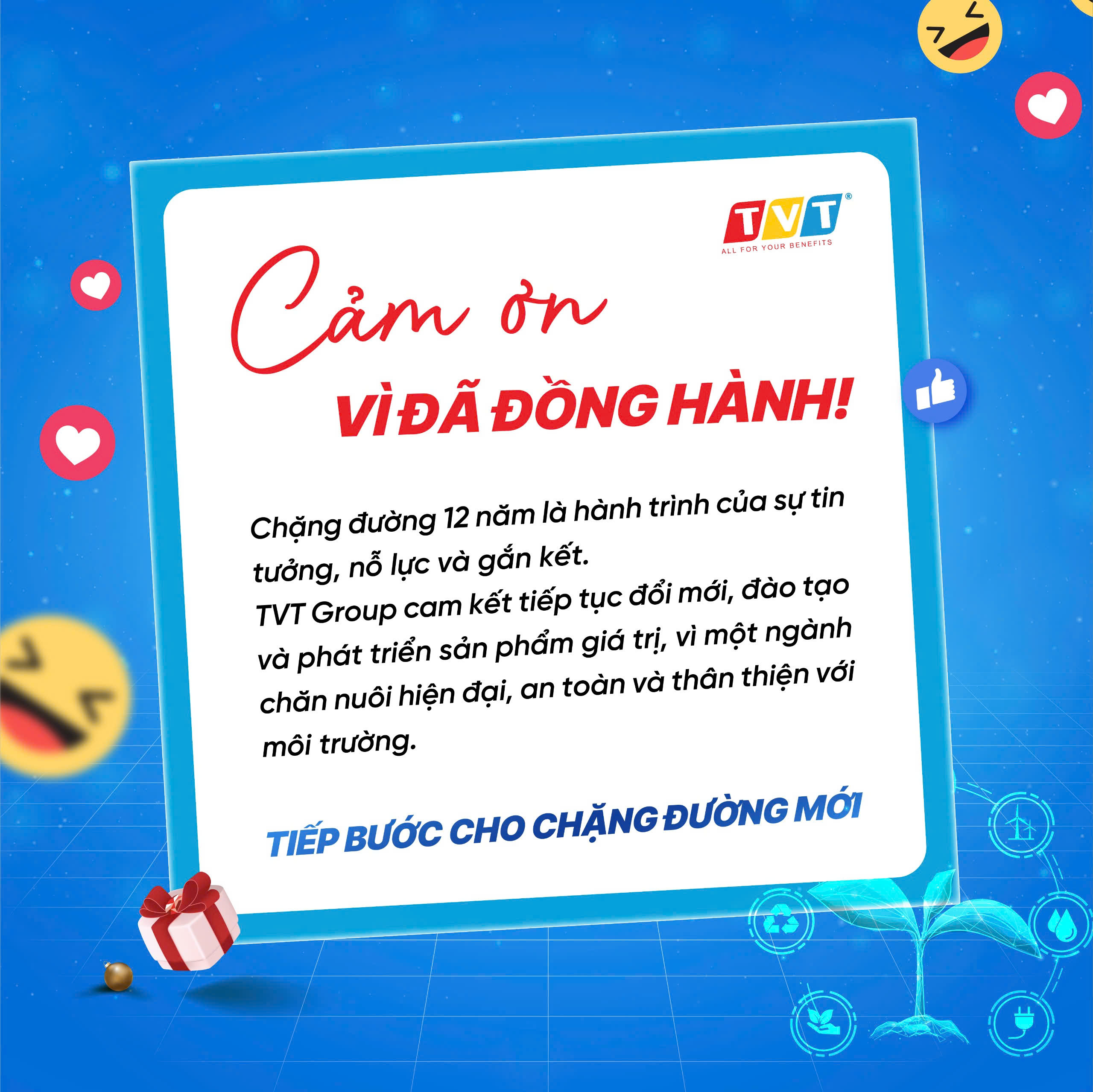 Chặng đường phía trước còn dài, nhưng với nền tảng vững chắc cùng niềm tin từ khách hàng và đối tác, TVT Group sẽ tiếp tục vươn mình mạnh mẽ– vì một ngành chăn nuôi Việt Nam phát triển toàn diện và bền vững.