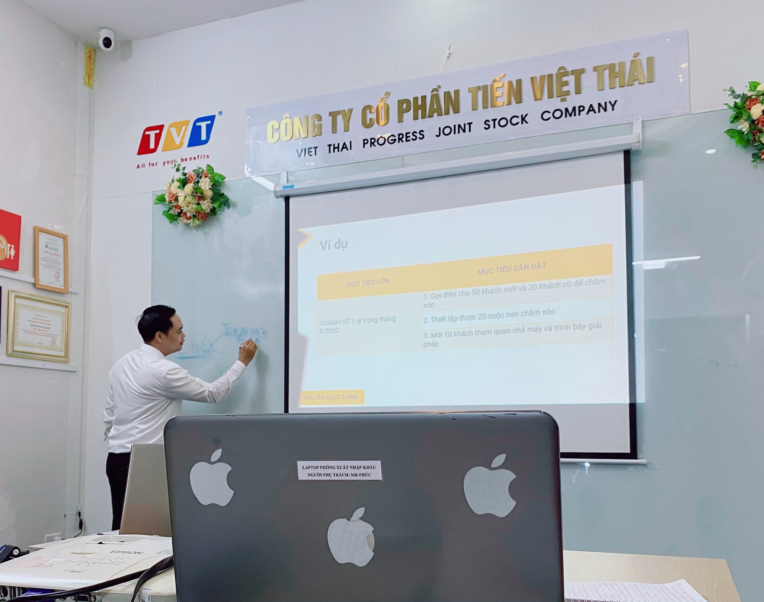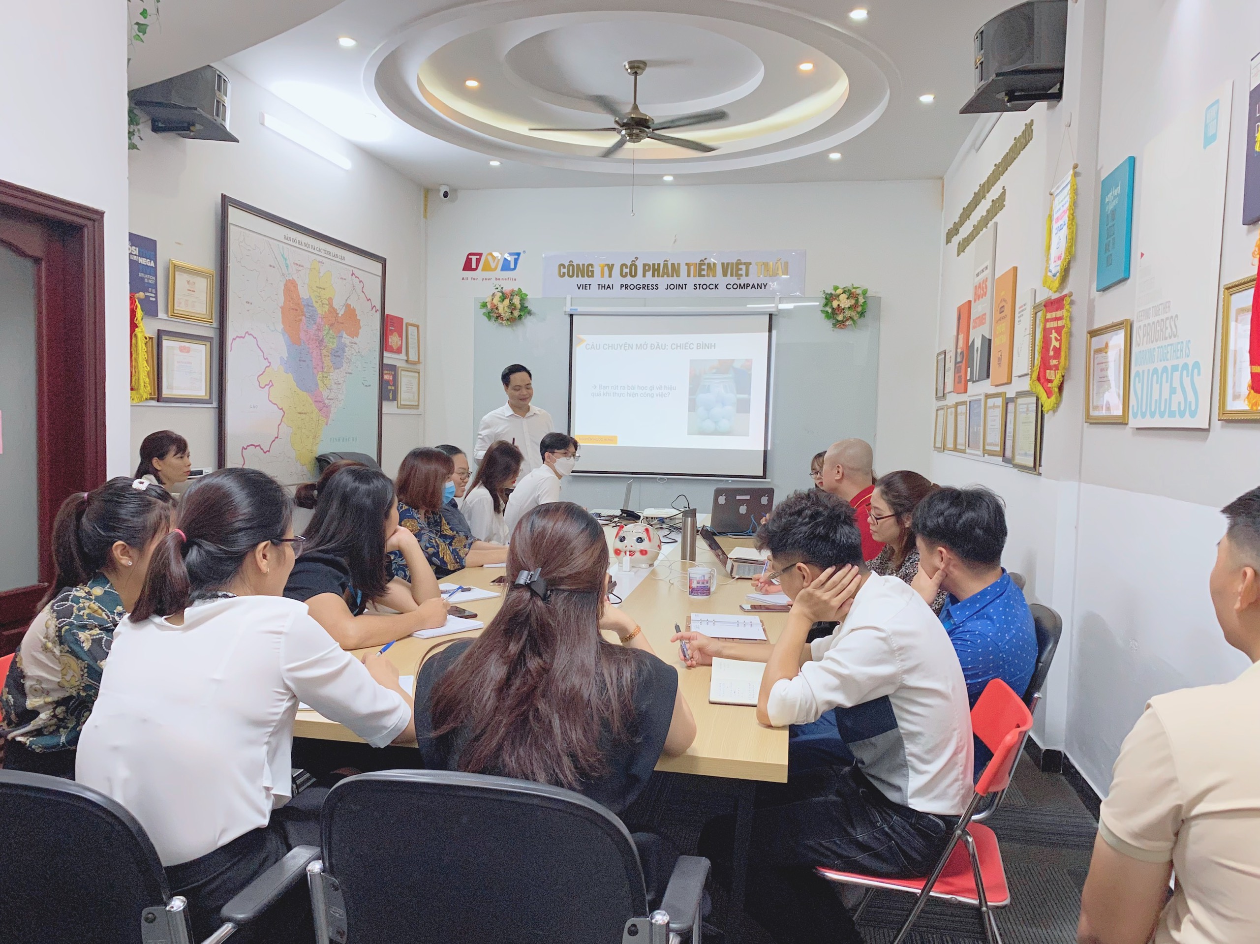 Thứ Hai, ngày 03/10/2022 tại phòng họp Công Ty CP Tiến Việt Thái đã diễn gia buổi đào tạo cho tất cả CBNV trong công ty với chủ để: “Nâng cao hiệu quả công việc” và “Đàm phám thành công” của khối Kinh Doanh do Th.S: Nguyễn Ngọc Hưng đào tạo.